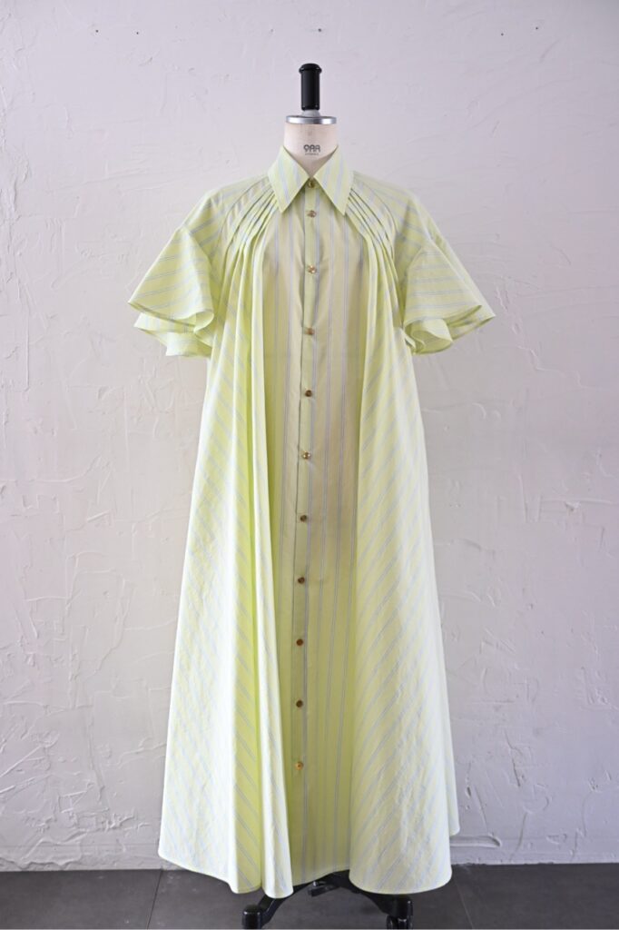 時代を経ても古さを感じない、そういった物には作り手の想いが入っている。この作品は2025年8月に完成しました。まだ半年程しか経ちませんが、いつ見ても美しいと思えます。このシャツドレスに込めた想いも10年、20年と時が経ち、もっと先まで届くと嬉しいです。