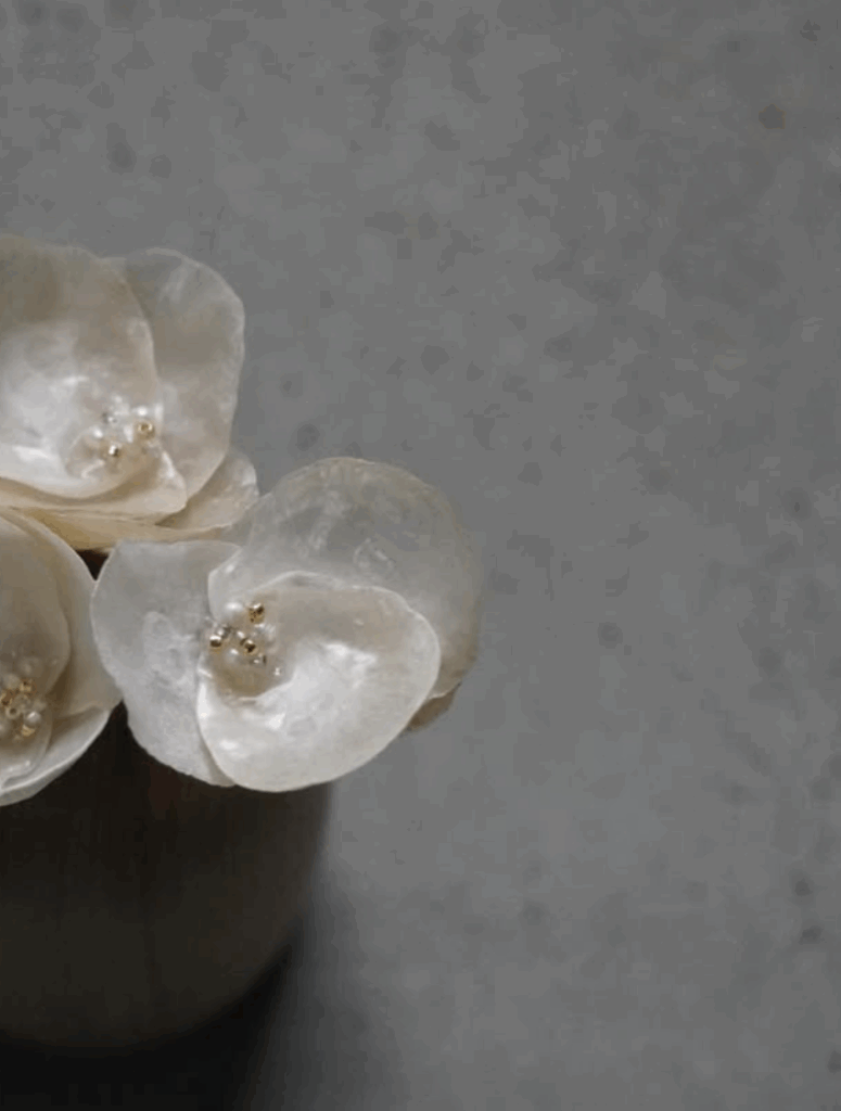 2026年、純白や漆黒の貝を用いて 和のモチーフを精密に表現する装身具を制作します。