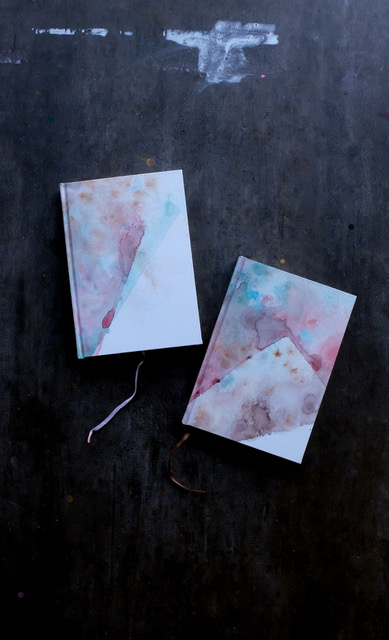 表紙を染めるのに下敷きにしている紙の、偶然のにじみの重なり具合から発生しました。