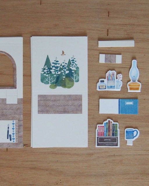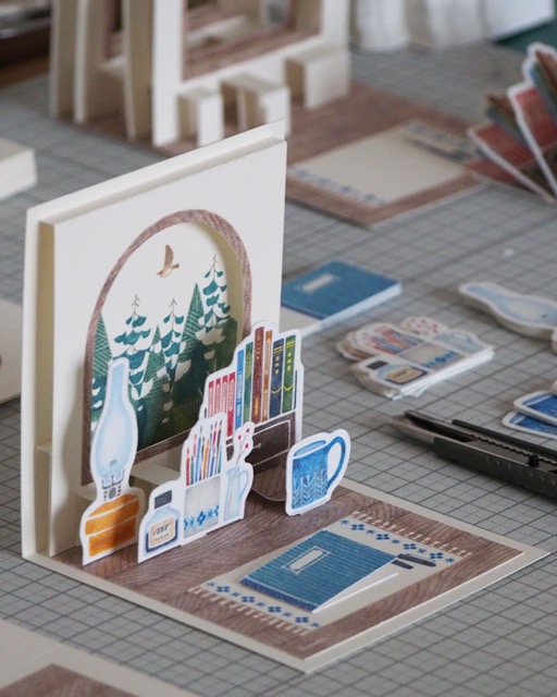 窓の外の風景や 卓上の文具も 立体になっているので、