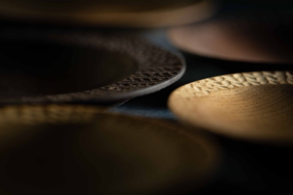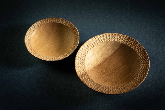 同じ樹種でも色合いや木目の違いで様々な表情を見せてくれる木の皿。そこに彫り模様を入れることで更に多様な表情を見せてくれます。