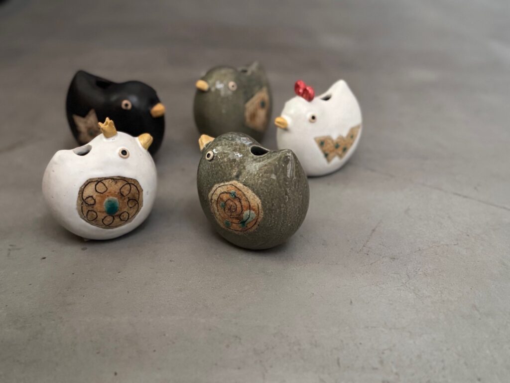 手びねりでつくられる、目が合って思わず声がでてしまいそうなワンコたち。うつわもあります