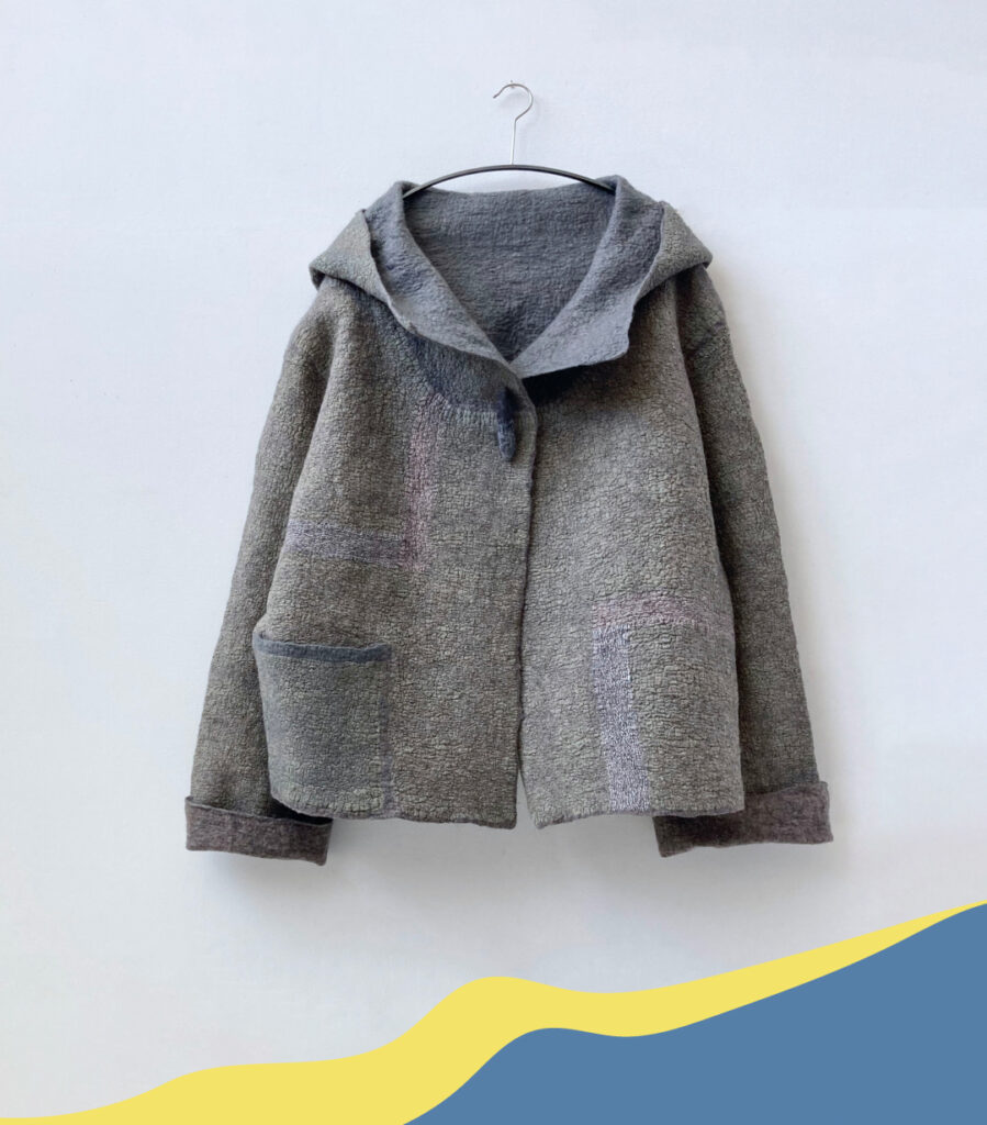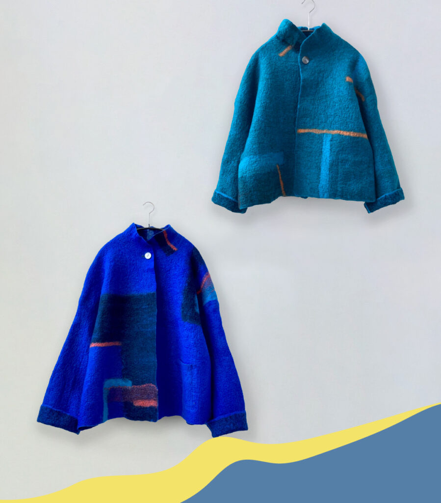 羊毛の温かさに、シルク、リネンなど軽やかな布の透明感が合わさった布フェルト。繊維が絡まりあい、ひとつひとつ表情が異なる独特の質感と色合いが生まれます。インスタレーションを手がけ、大学の教壇にも立つ作家・前田千絵子が、その技法を活かし制作している暮らしのアイテムが「chichi シシ」です。アートを身にまとうように、あなたの装いが楽しくなりますように。